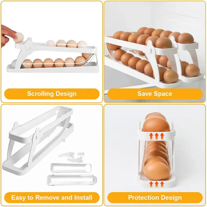 Keeps eggs in order, Rolling Egg Holder is designed with 2 tiers that can be holds up to 14 eggs, with small footprint saves fridge space.