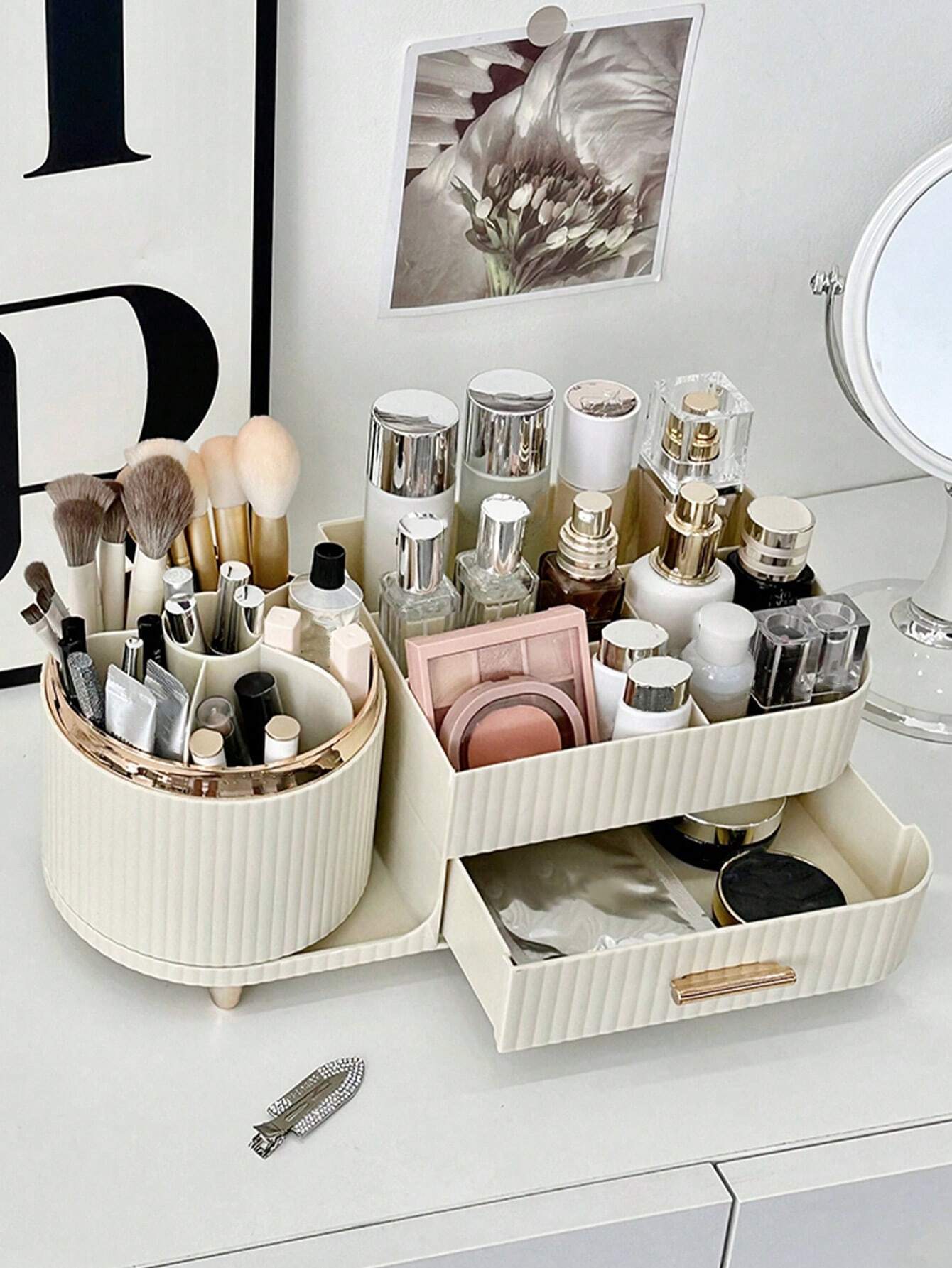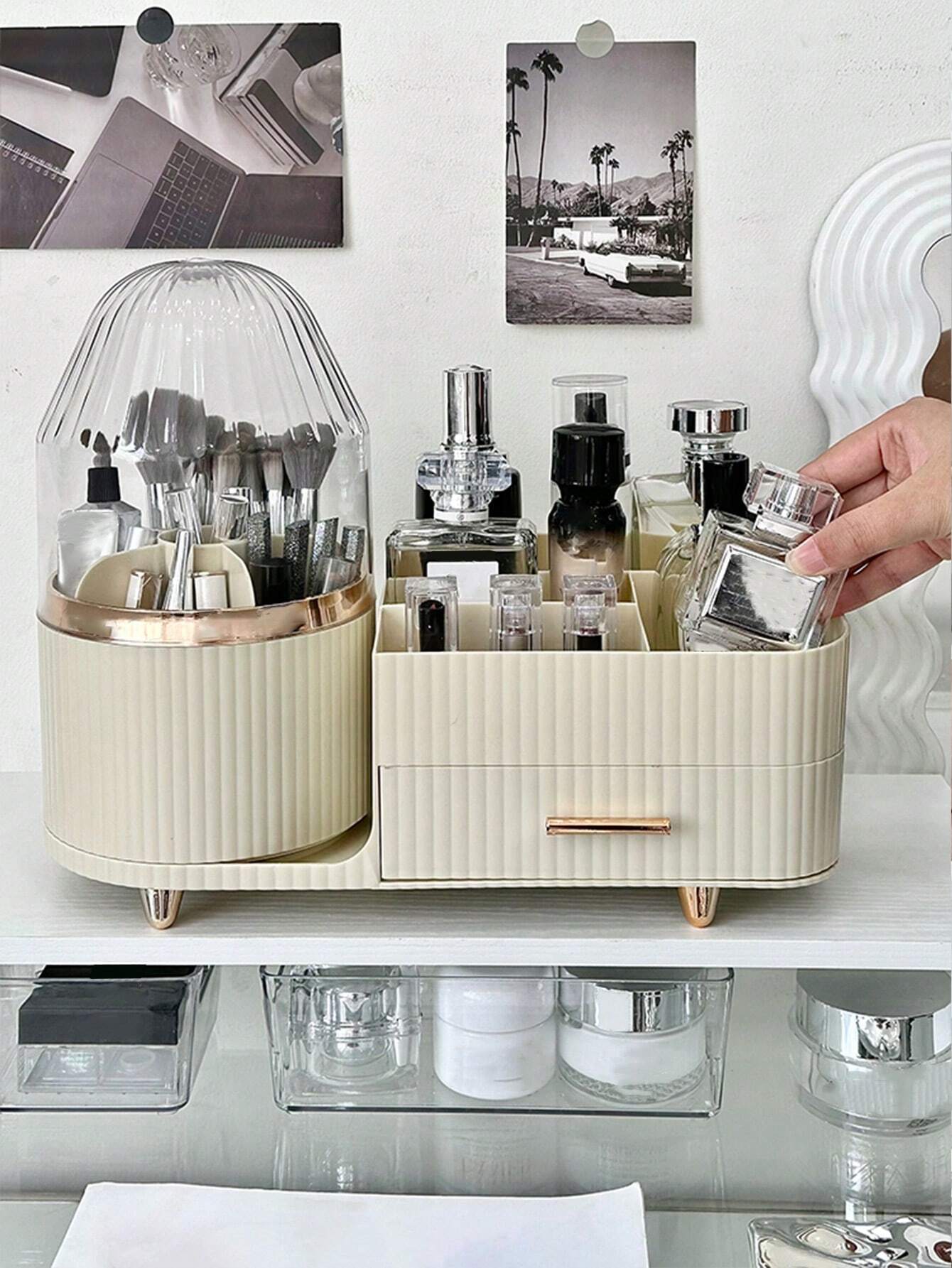 - Fashionable and durable: the simple and simple milky white color of the cosmetic make-up organizer fits perfectly on the dressing table. The large storage space provides space for your cosmetic and skin care products, saves space and keeps your desk tidy.