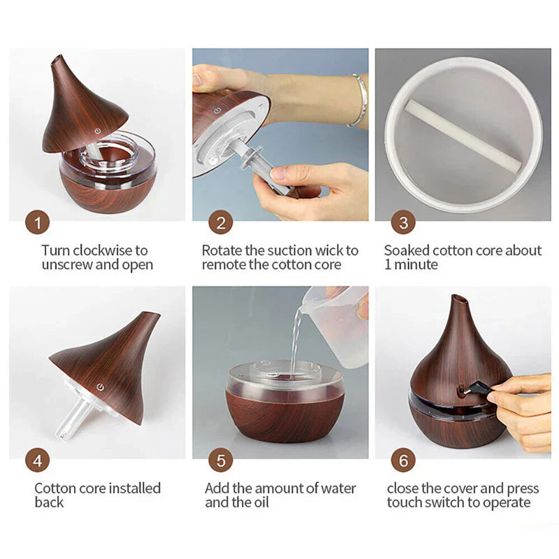 This Aroma Diffuser Air Humidifier works to add moisture to the air and release a soothing fragrance. Improve air quality and create a relaxing atmosphere with this multifunctional device. Enhance your physical and mental well-being, while making your space more comfortable.