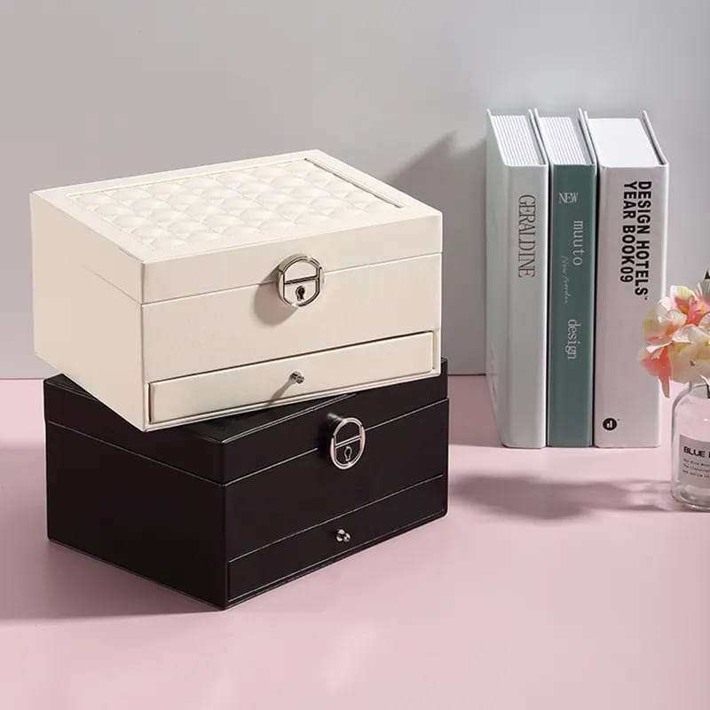 This classic jewelry organizer box is the perfect solution for keeping your valuable pieces organized and within reach. With its timeless design and functional compartments, you can easily store your jewelry and accessories while also protecting them from scratches and damage. Made with high-quality materials, this box is a must-have for any jewelry lover.