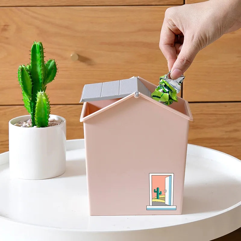 This mini homeshaped dustbin is a convenient and stylish solution for small spaces. With its compact size and modern design, it easily fits into any home or office setting. Made with durable materials, it is built to withstand daily use. Perfect for keeping your space clean and clutter-free.