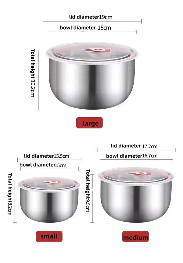 Introducing our Set of 3 Steel Fresh Bowls, perfect for keeping your food fresh and organized. Made of sturdy steel, these bowls are durable and reliable. With 3 different sizes, they accommodate all your food storage needs, making meal prep a breeze. Upgrade your kitchen storage with these high-quality bowls!