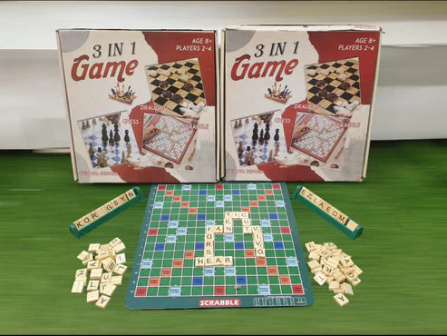 3 in 1 Wooden game Scrabble, Chess and Draught