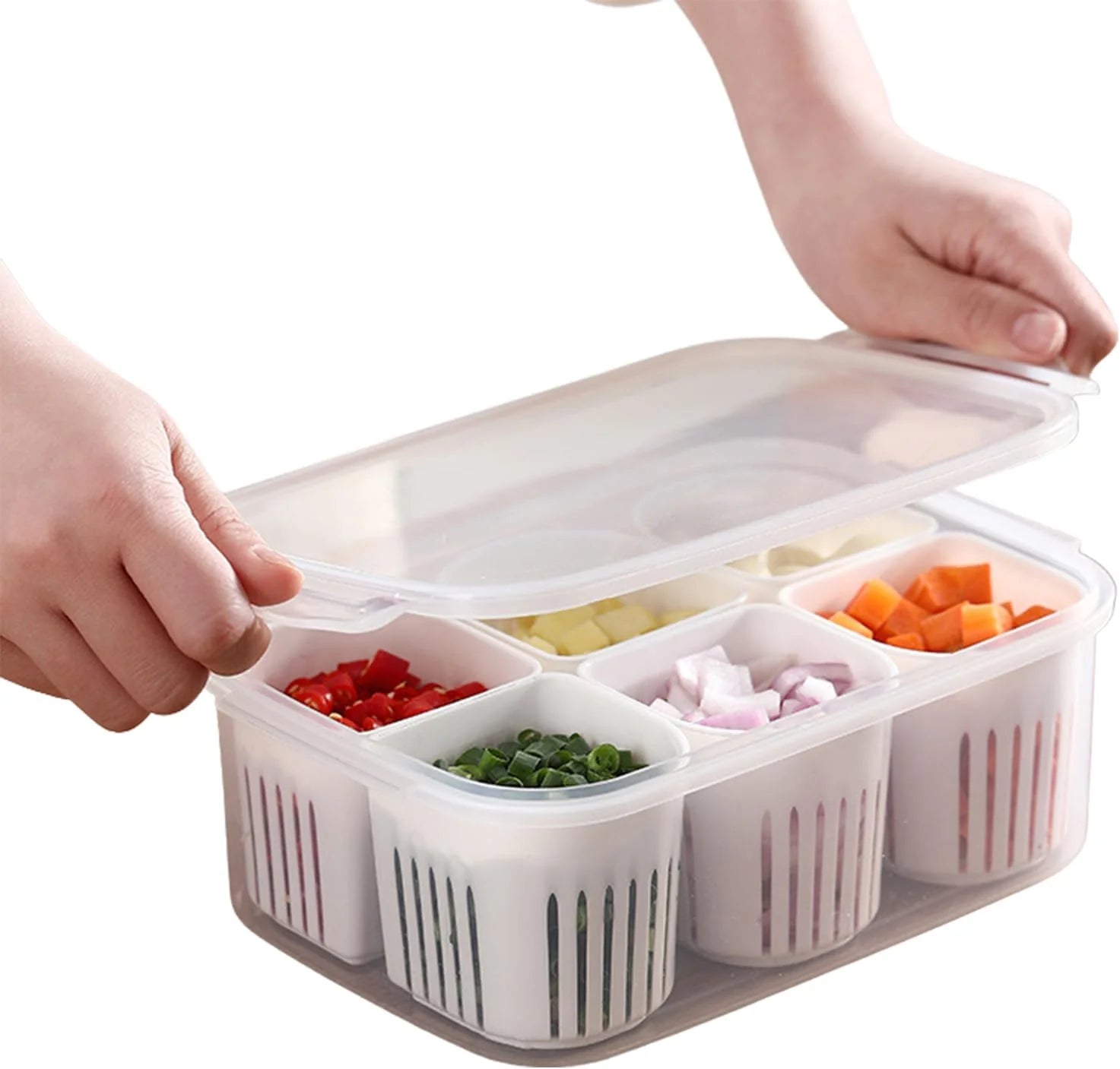 Vegetable Fruit Basket 4 and 6 Grid Storage Box With Lid