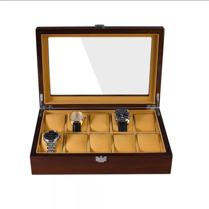 - Sufficient space: 8, 10 and 12 watch compartments with detachable bead cushions. The storage box has a large capacity, is equipped with a safety lock, and has a hinge to enhance the safety of the watch case.